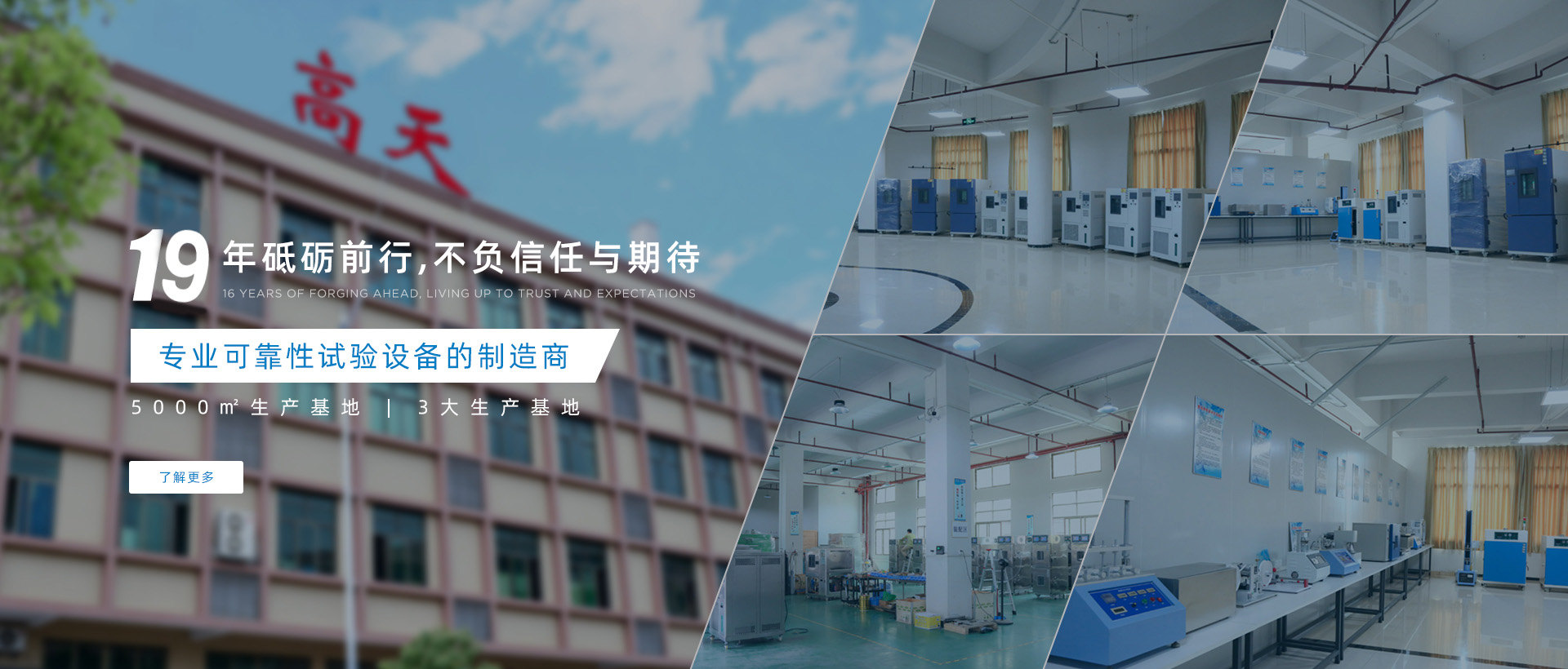 東莞市高天試驗(yàn)設(shè)備有限公司是一家可靠性試驗(yàn)設(shè)備的制造商,我們專(zhuān)注于可靠性試驗(yàn)已有19余年,在此期間,我們竭盡所能,努力為客戶(hù)提供完善的實(shí)驗(yàn)室規(guī)劃方案,匹配質(zhì)優(yōu)價(jià)廉的試驗(yàn)設(shè)備。高天擁有完整的研發(fā)團(tuán)隊(duì),其中有很多人都躋身試驗(yàn)設(shè)備行業(yè)多年,能為顧客提供完善的技術(shù)方案,以幫助廣大客戶(hù)在確保其產(chǎn)品品質(zhì)的前提下,有效降低經(jīng)營(yíng)成本,提升經(jīng)營(yíng)競(jìng)爭(zhēng)優(yōu)勢(shì)。高天生產(chǎn)的設(shè)備種類(lèi)眾多,同時(shí)擁有實(shí)用新型專(zhuān)利證書(shū),銷(xiāo)售范圍覆蓋全國(guó)。公司自成立以來(lái)堅(jiān)決以精美的外觀(guān)設(shè)計(jì),認(rèn)真務(wù)實(shí)的工作精神,良好周到的后續(xù)服務(wù),贏(yíng)得了客戶(hù)良好的口碑。我們將一如既往,堅(jiān)持以“誠(chéng)信經(jīng)營(yíng)”為...